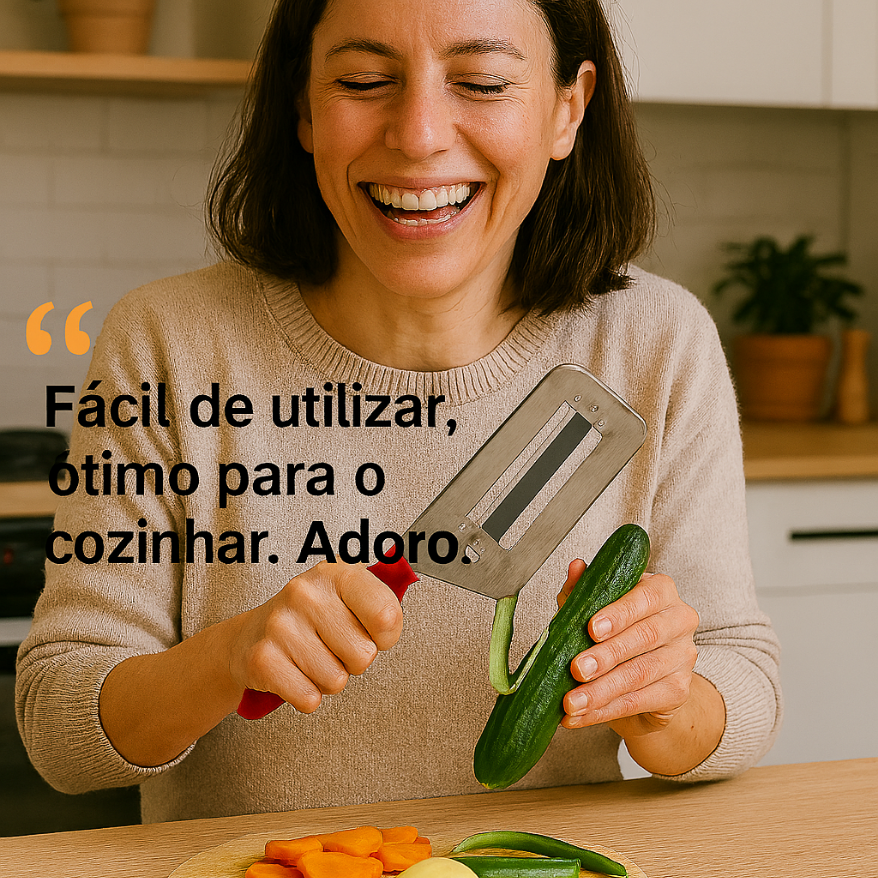 - 🔒 Durável e seguro: Com lâminas afiadas, mas seguras de ambos os lados, corta, fatia e descasca frutas e legumes com precisão, sem risco de acidentes.